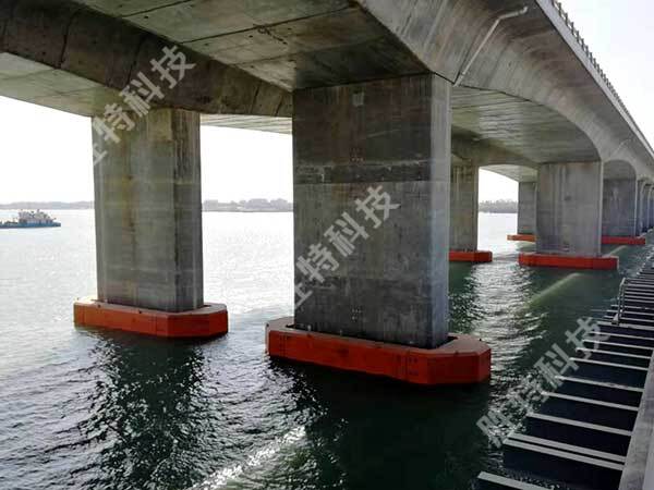勝特科技公司為福建省廈門市翔安機場南港特大橋定制設計生產的自浮式鋼覆復合材料橋梁防撞設施安裝完畢并投入使用中。