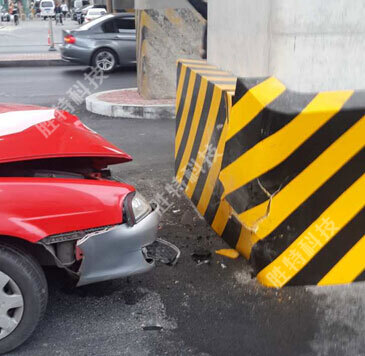 2015年10月9日下午,一輛出租車搶道造成其正面撞上了東陵路立交橋下一處橋墩。出租車保險(xiǎn)杠和前車蓋變形,車上人員并無(wú)大礙。剛剛投入使用的復(fù)合材料互通立交橋墩防撞設(shè)施在此次事故中起到了避免橋墩結(jié)構(gòu)遭受破壞的作用,同時(shí)降低了車輛損失尤其是避免了司乘人員受到過(guò)大的損傷,真正達(dá)到了“人、橋、車 安”。
