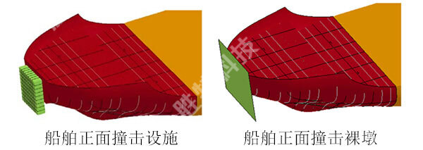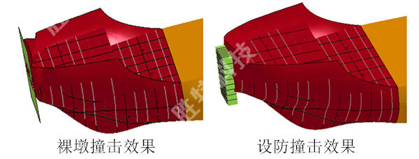 設防撞擊效果如下圖所示,防撞設施發生部分變形,替船舶分擔了動能的耗散。