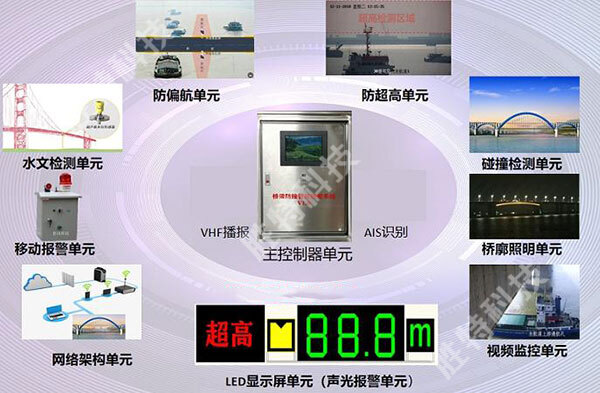 橋梁防撞智能主動預(yù)警系統(tǒng)是一個多功能的橋梁船舶防撞綜合監(jiān)控系統(tǒng),采用激光對過往船只探測、熱成像監(jiān)測船舶是否偏離航道、電子圍欄預(yù)警航道偏離、AIS船舶身份識別預(yù)警、VHF無線電預(yù)警等現(xiàn)代智能技術(shù),通過視頻監(jiān)控、無線數(shù)據(jù)傳輸、聲光報(bào)警等方式對橋梁防船撞做出提前預(yù)警。