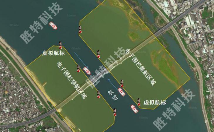 模擬航標(biāo)功能:系統(tǒng)把橋梁的墩臺及危險(xiǎn)地點(diǎn)通過AIS系統(tǒng)向附近船舶發(fā)布虛擬航標(biāo)信息,經(jīng)過的船舶靠近虛擬標(biāo)點(diǎn)時船載AIS裝置會自動發(fā)出預(yù)警信息提醒船舶駕駛員注意安全航行。