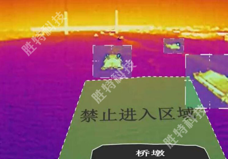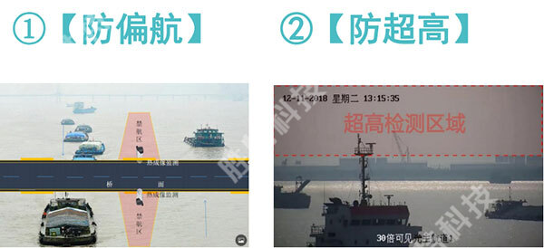 船舶超高預(yù)警:系統(tǒng)在橋梁檢測區(qū)域設(shè)置熱成像儀,根據(jù)成像區(qū)域的中心線上方是否有移動的圖像識別船舶是否超高,系統(tǒng)如果探測到船舶超高,通過語音對講系統(tǒng)向船舶及時發(fā)出報(bào)警信號。
