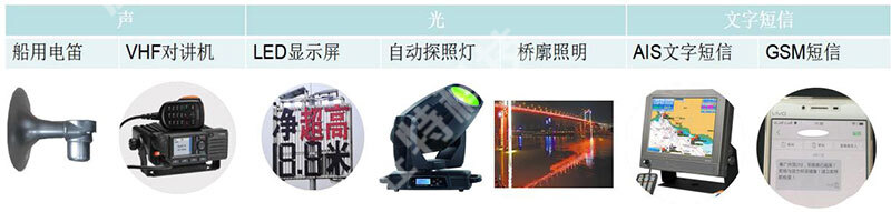 系統(tǒng)告警方式采用定向揚(yáng)聲器、爆閃燈、電子顯示屏等聲光電設(shè)備和VHF電臺、短信提示等多種手段相結(jié)合,對船舶駕駛員進(jìn)行危險(xiǎn)提示,減少事故發(fā)生的概率。